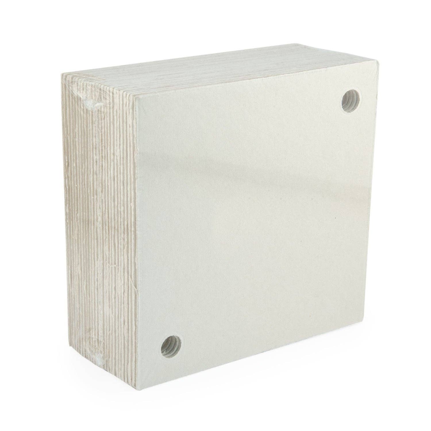 * The Filter Pads #2 Fine drilled is a solid-style filtration product with a coarse finish. They come in a cream colour and are designed for use after fermentation. The dimensions of the pads are 198mm x 198mm (or 19.8cm, 7.8 inches, or 7 13/16 inches) in height and length. They are recommended for use with a grade of AF 3-1H (U3) and a flow rate of 700 to 1000 L/m2 h. The maximum differential pressure the pads can withstand is 250 kPa (or 2.5 bar). The pads are made from purified and bleached cellulose, natural inorganic filter aids, and polyamidoamine (less than 3%) and are free of plastic fibres and formaldehyde. The sheets are also free of GMO and common allergens and are food-grade and FDA-approved. The sheets can be recycled like paper, composted or disposed of with domestic waste if uncontaminated.